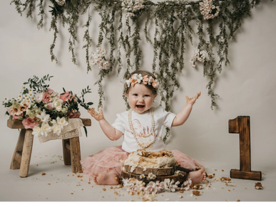 Capture your baby's birthday cake smash in 1-2 hours of fun! Squash, smear cake, then enjoy a bath with bubbles. We provide a towel for drying. We'll clean up the studio. Edited images in a private online gallery. Share baby's allergies with us! £140. Images can be purchased for £18 each or £120 for the full gallery.
