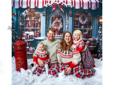 Christmas mini photo shoots in November. 30-minute session £95 with two Christmas backdrops. Pick 3 digital images for cards/décor. Dress festive! Arrive on time; sessions back to back. Suitable for kids 6 months+, assistance needed if child can't sit alone. Non-refundable deposits.
